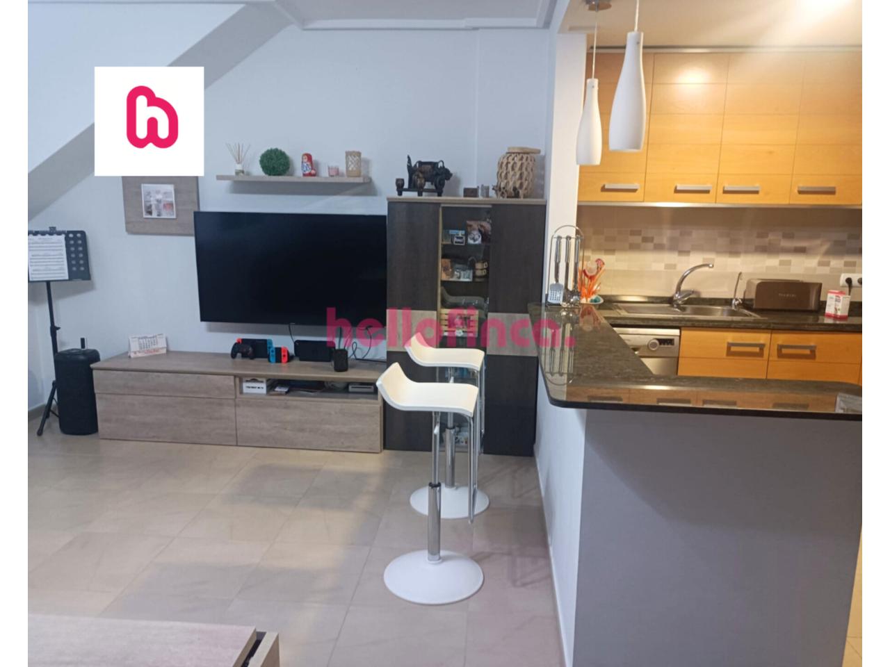 La vivienda dispone de un salón amplio y luminoso con cocina integrada, creando un espacio abierto y funcional ideal para el día a día.