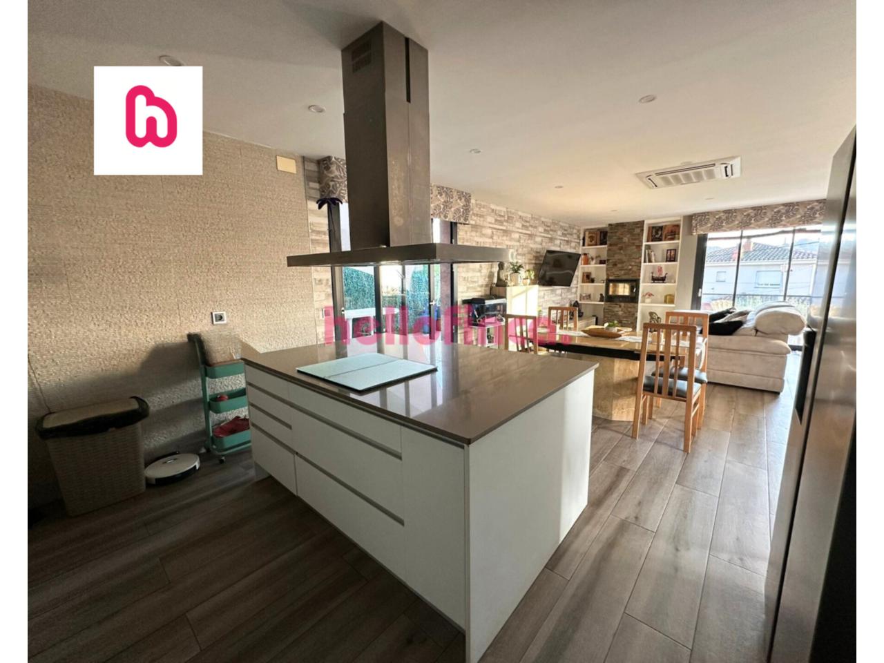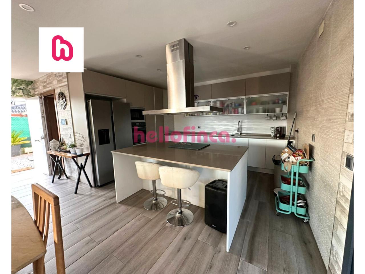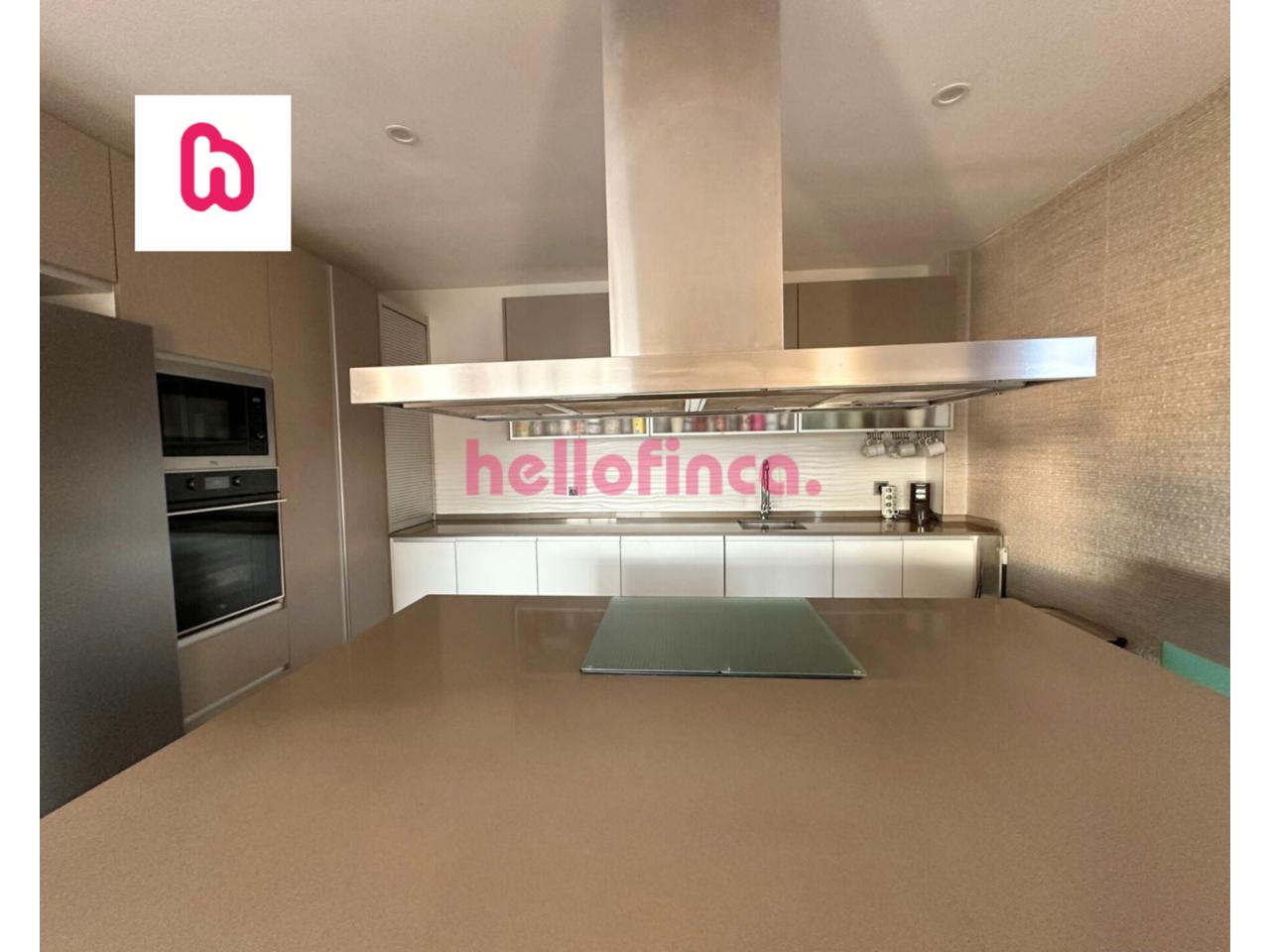 • Cocina moderna abierta con isla (electrodomésticos: lavavajillas, horno, microondas, campana y vitrocerámica)