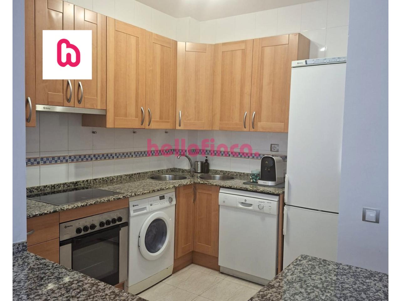 • Cocina abierta equipada con electrodomésticos en perfecto estado